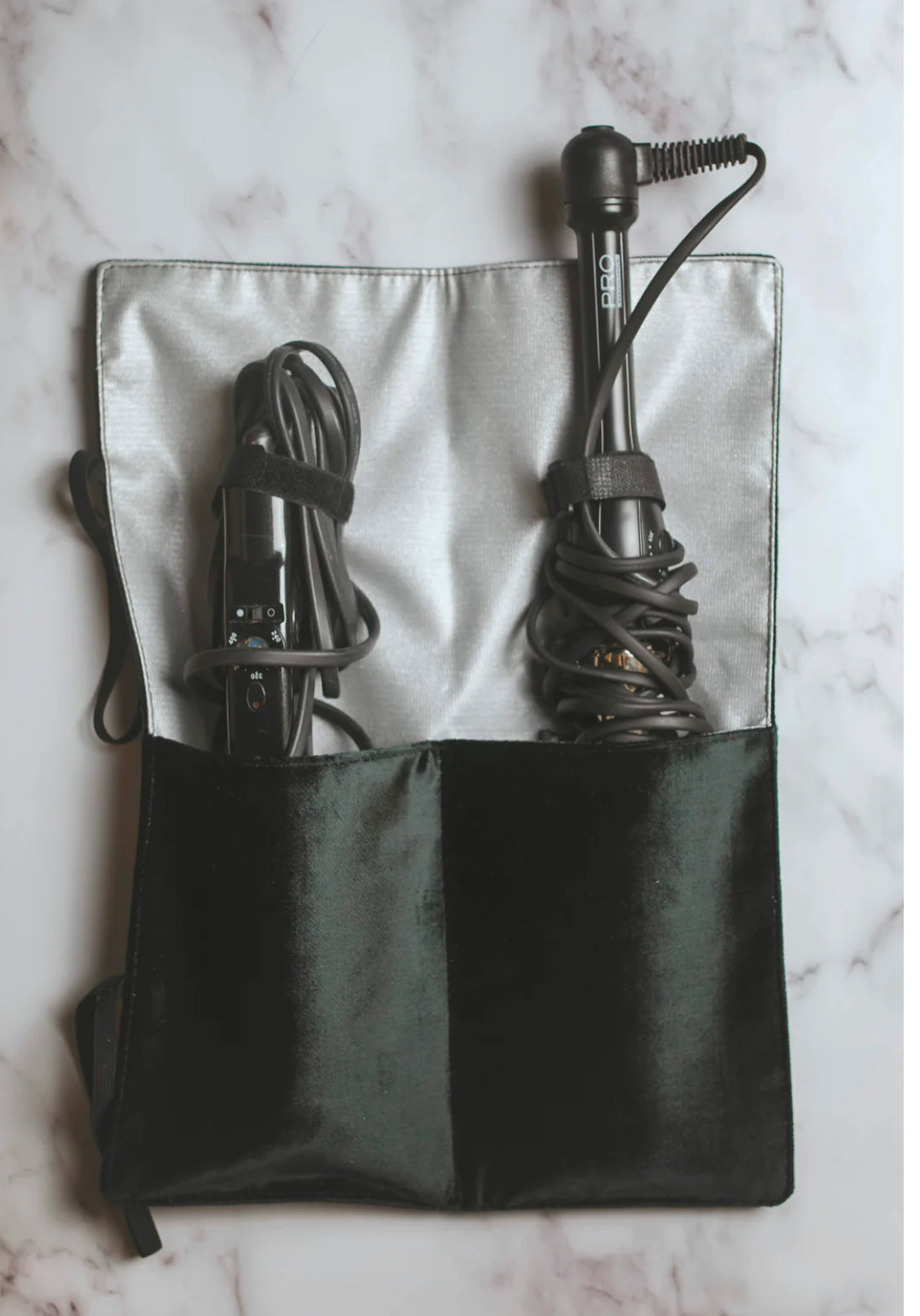 The Exotica Hot Tools Bag features two pockets and Velcro straps to hold your hot tools in place. Designed with a heat resistant fabric, you can pack with either hot or cold styling tools, and a comb or brush. The exterior of these hot tools features various fabrics, making your hot tools bag fashionable, and able to coordinate with your Makeup Junkie Bags.