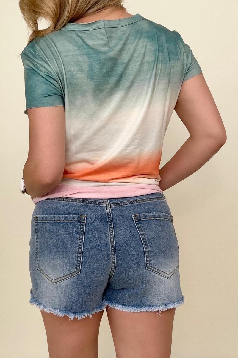 Floral Pocket Distressed Raw Hem Denim Shorts