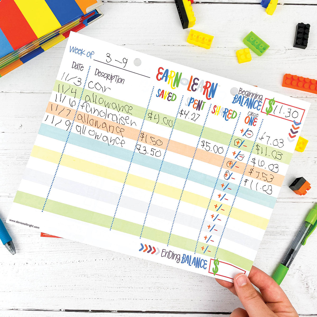 - Teaches them ACCOUNTABILITY with their spending, saving & sharing, using a simple weekly register.