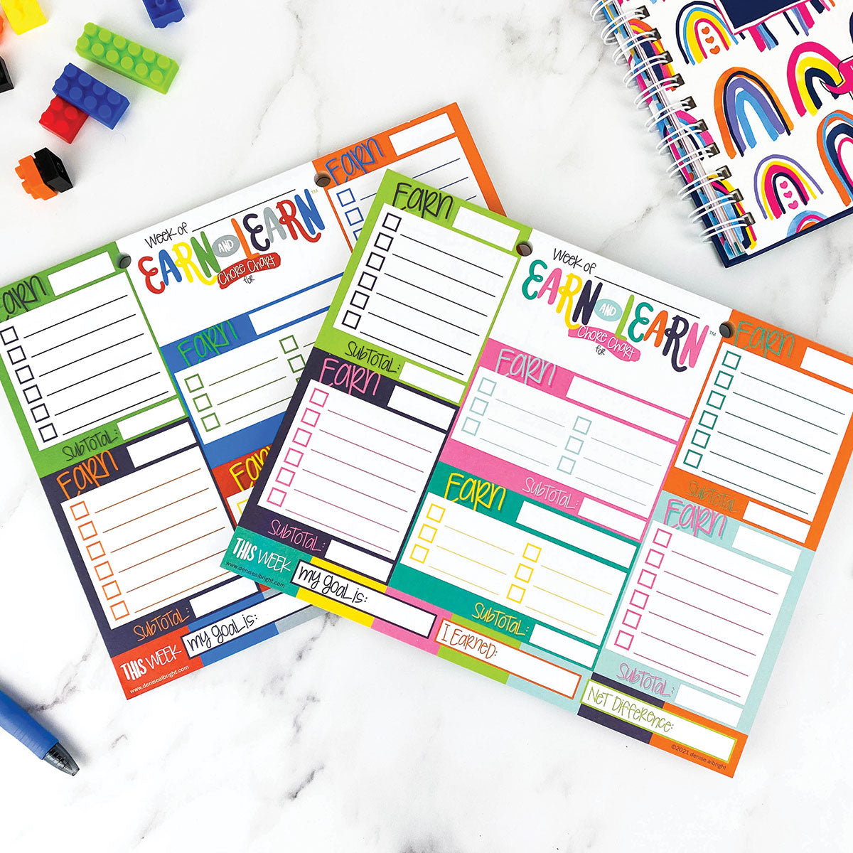 There's no better time to help kids learn how to manage what they earn (& spend) while they are young! This FUN & EASY Earn and Learn® Kids Money Management Chore Chart will help your child learn valuable life skills. Use the colorful boxes to list tasks, chores, and to-do's while assigning each box a value, like screen time, play time, or cold, hard cash!