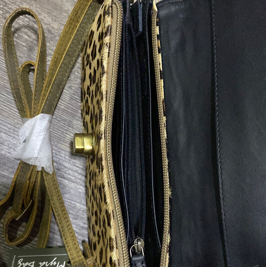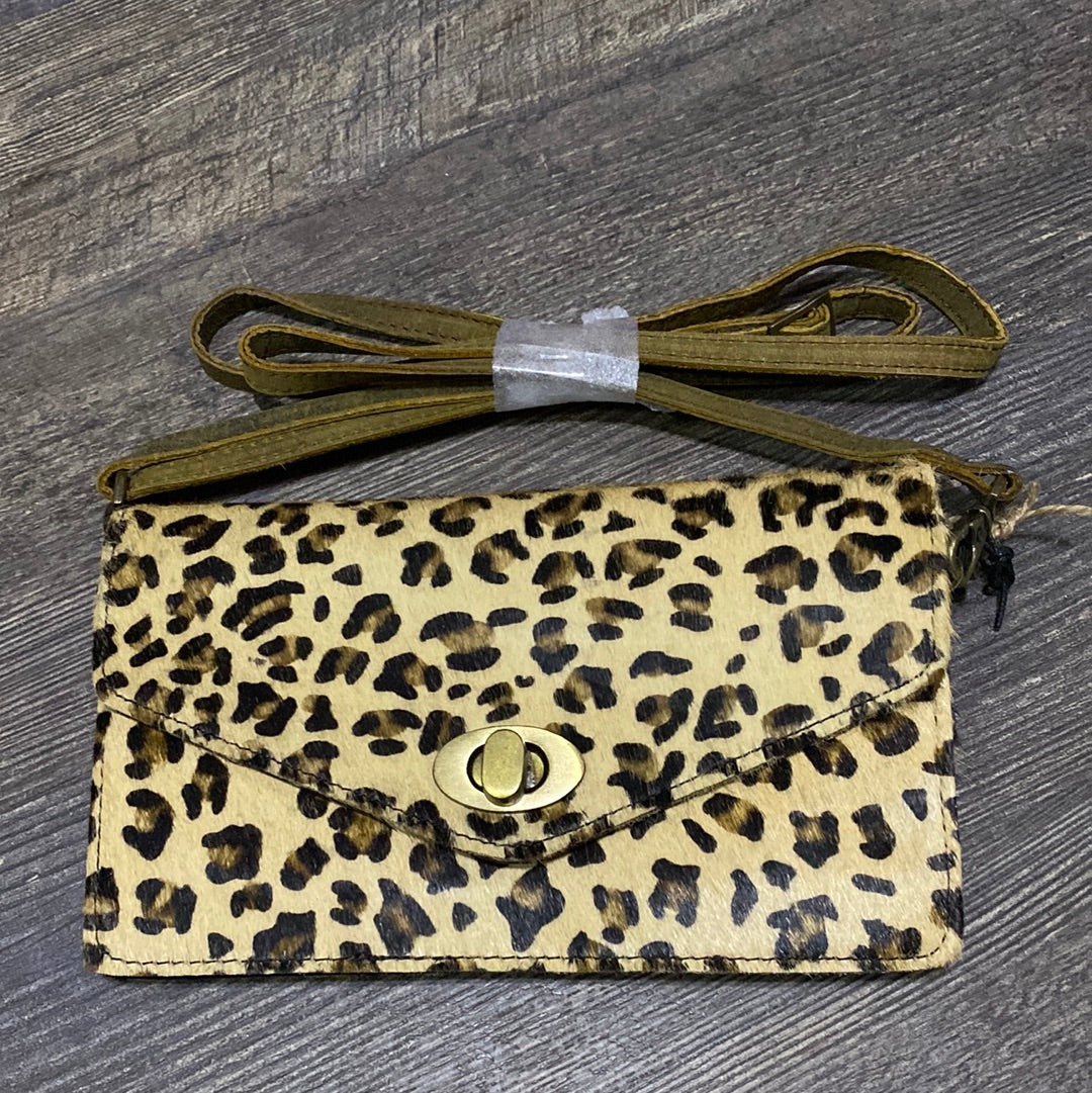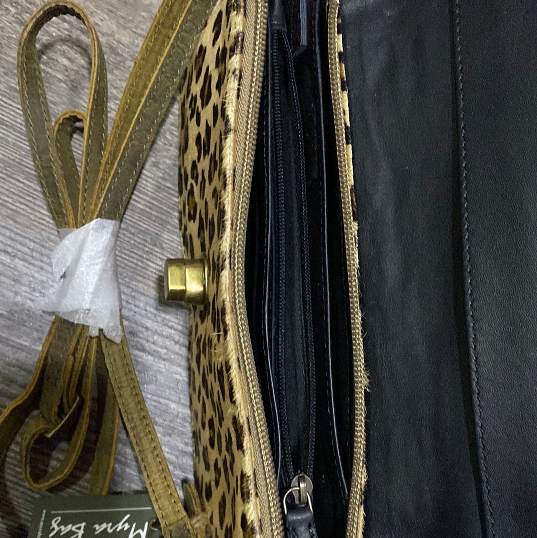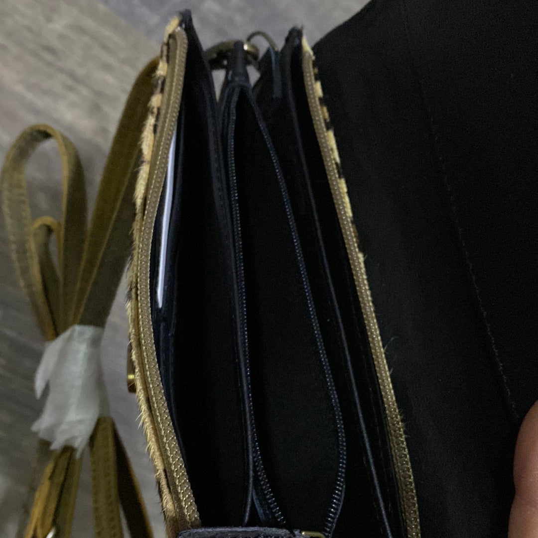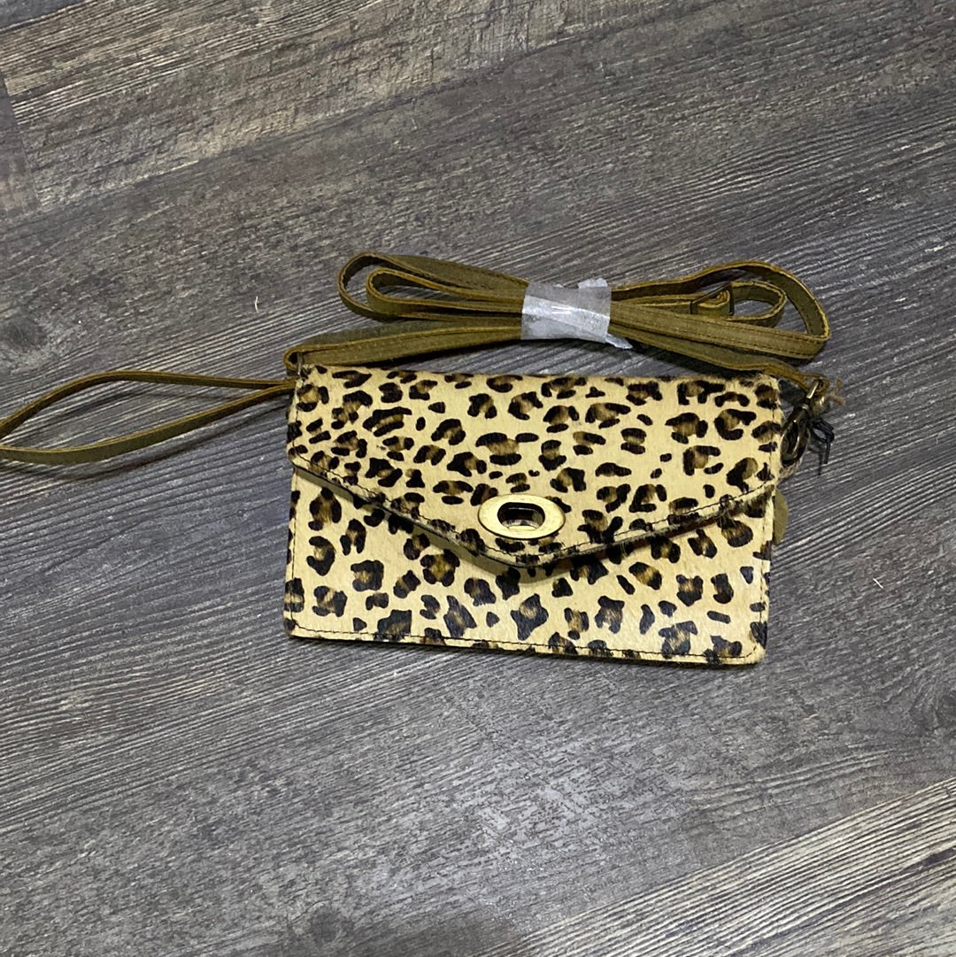 Hairon leather bag. Long adjustable/removable strap to wear however you like. Has a wristlet strap attached if want to remove the long strap