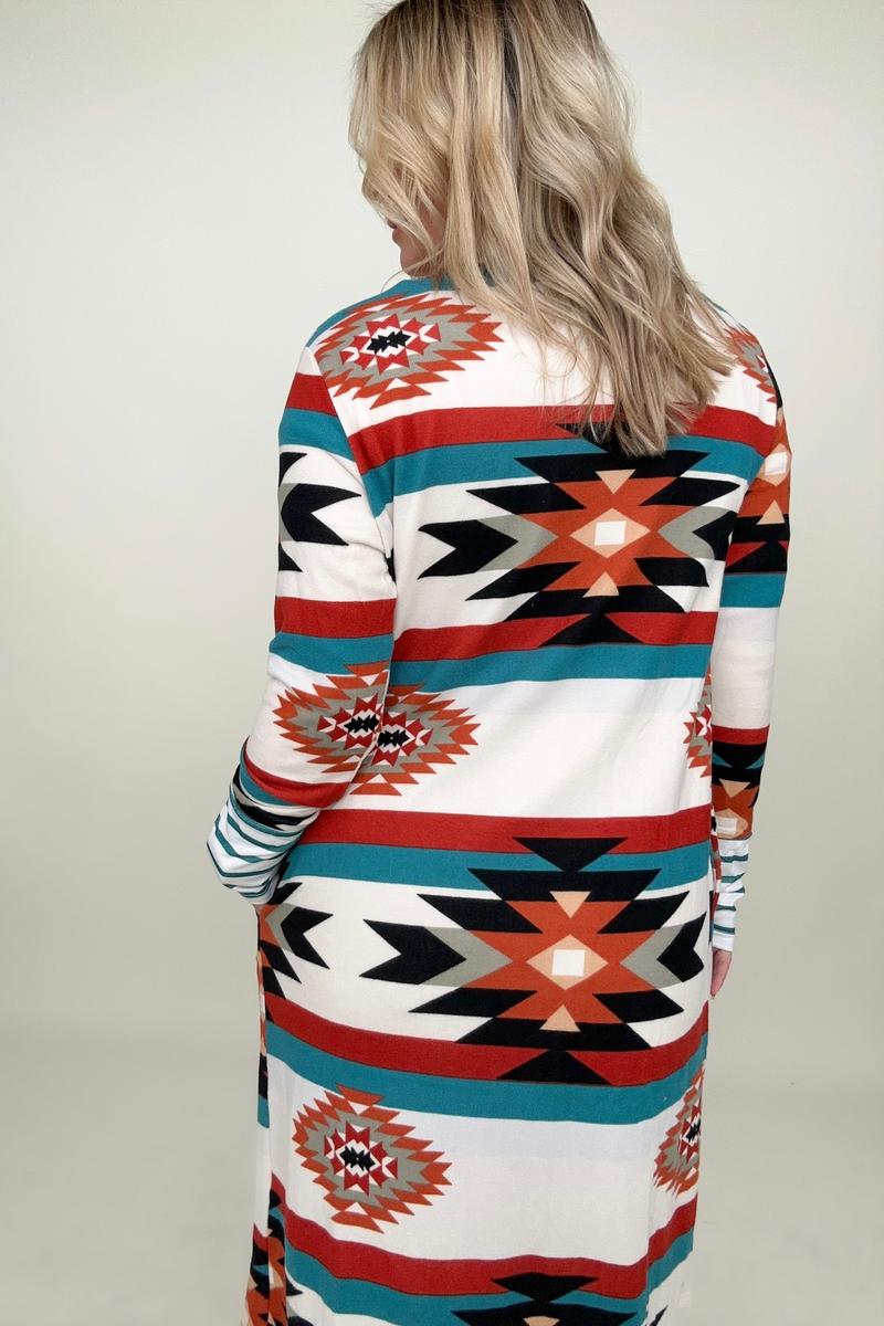 Multicolor Geometric Color Block Long Cardigan