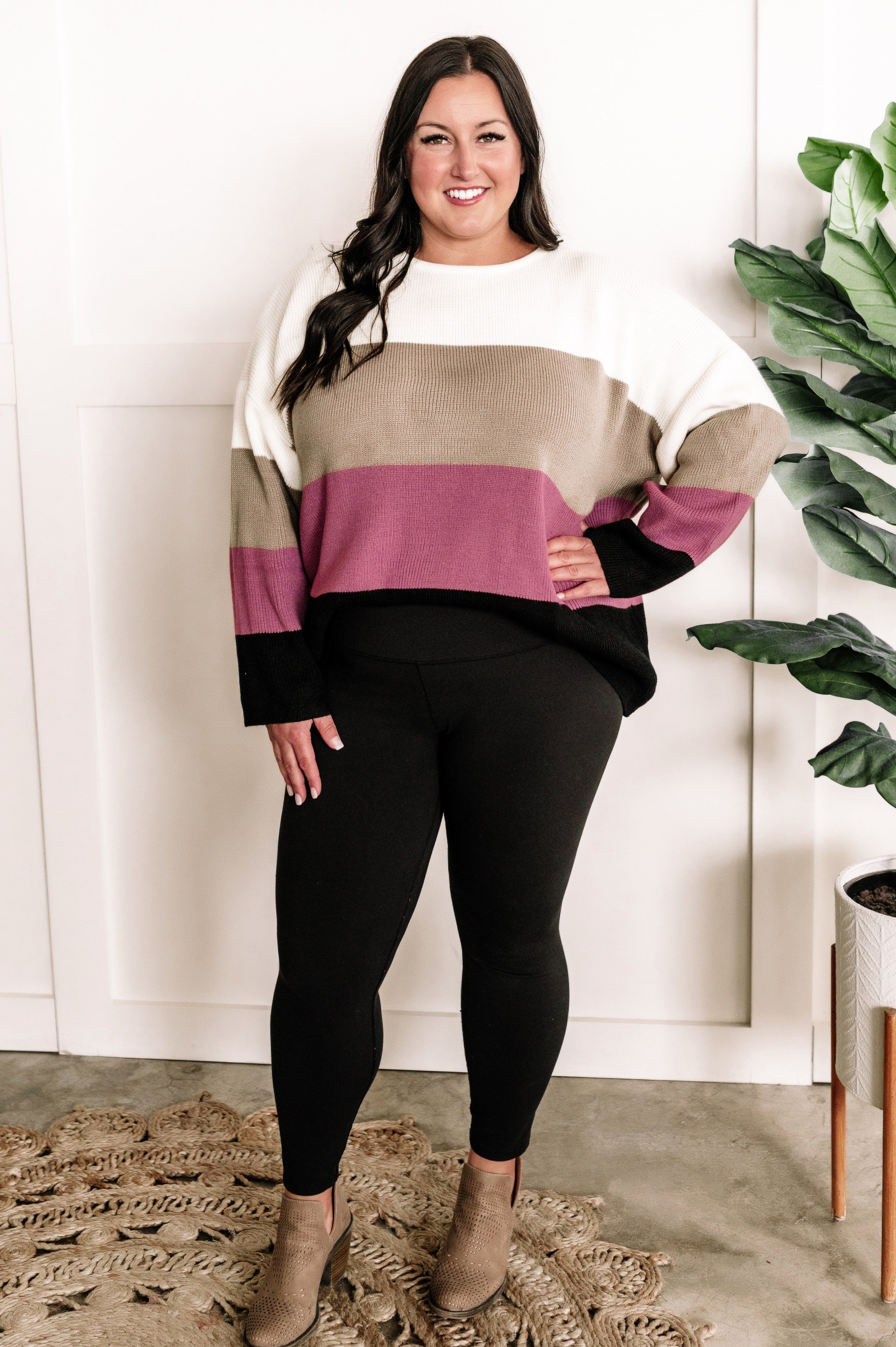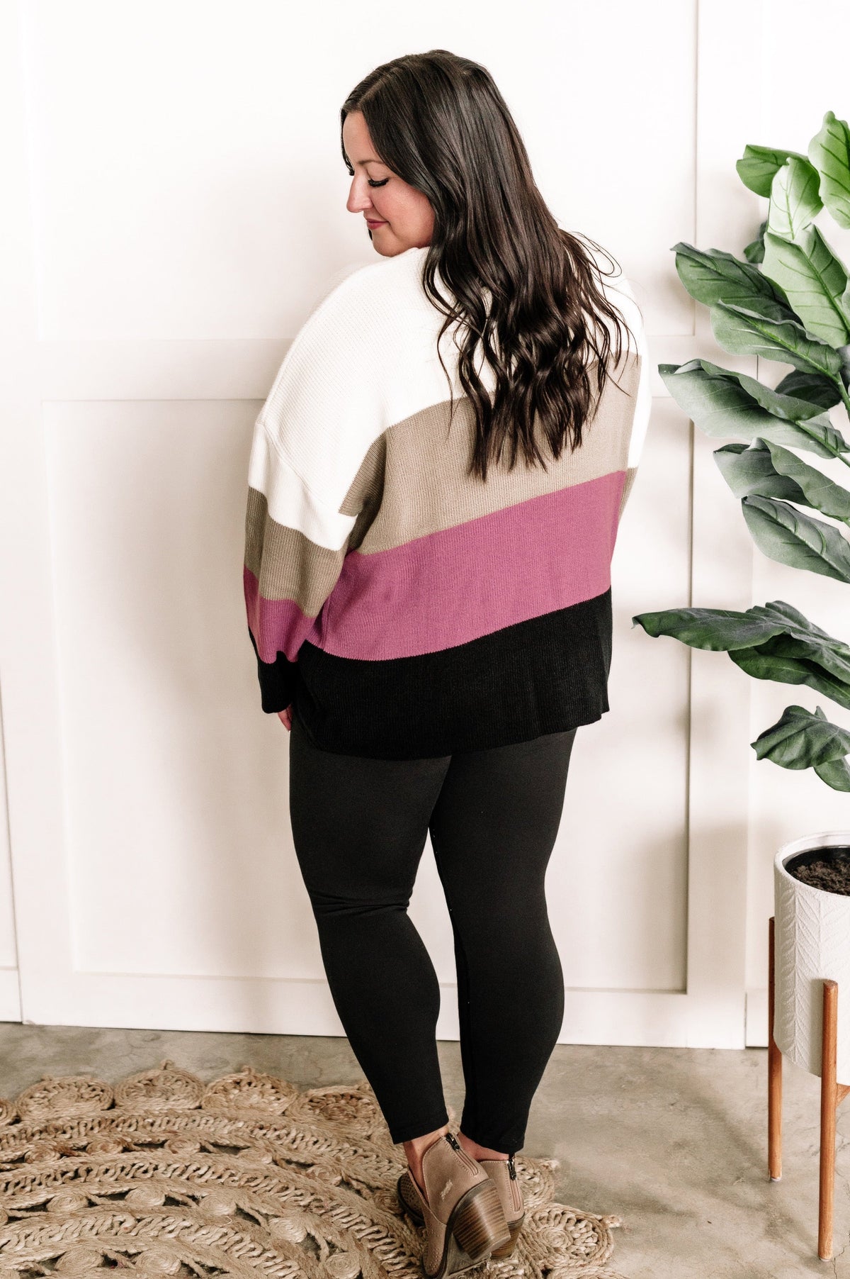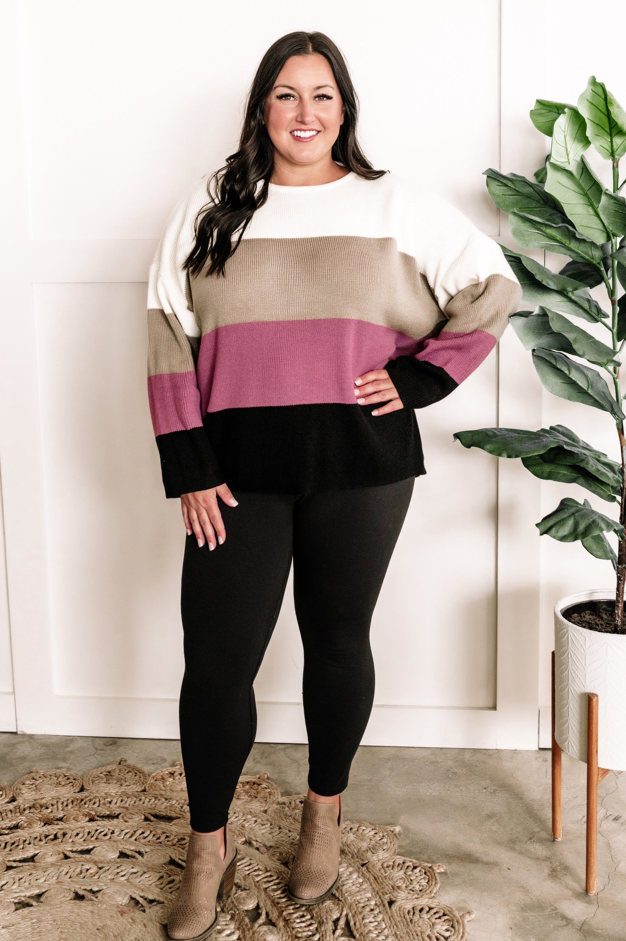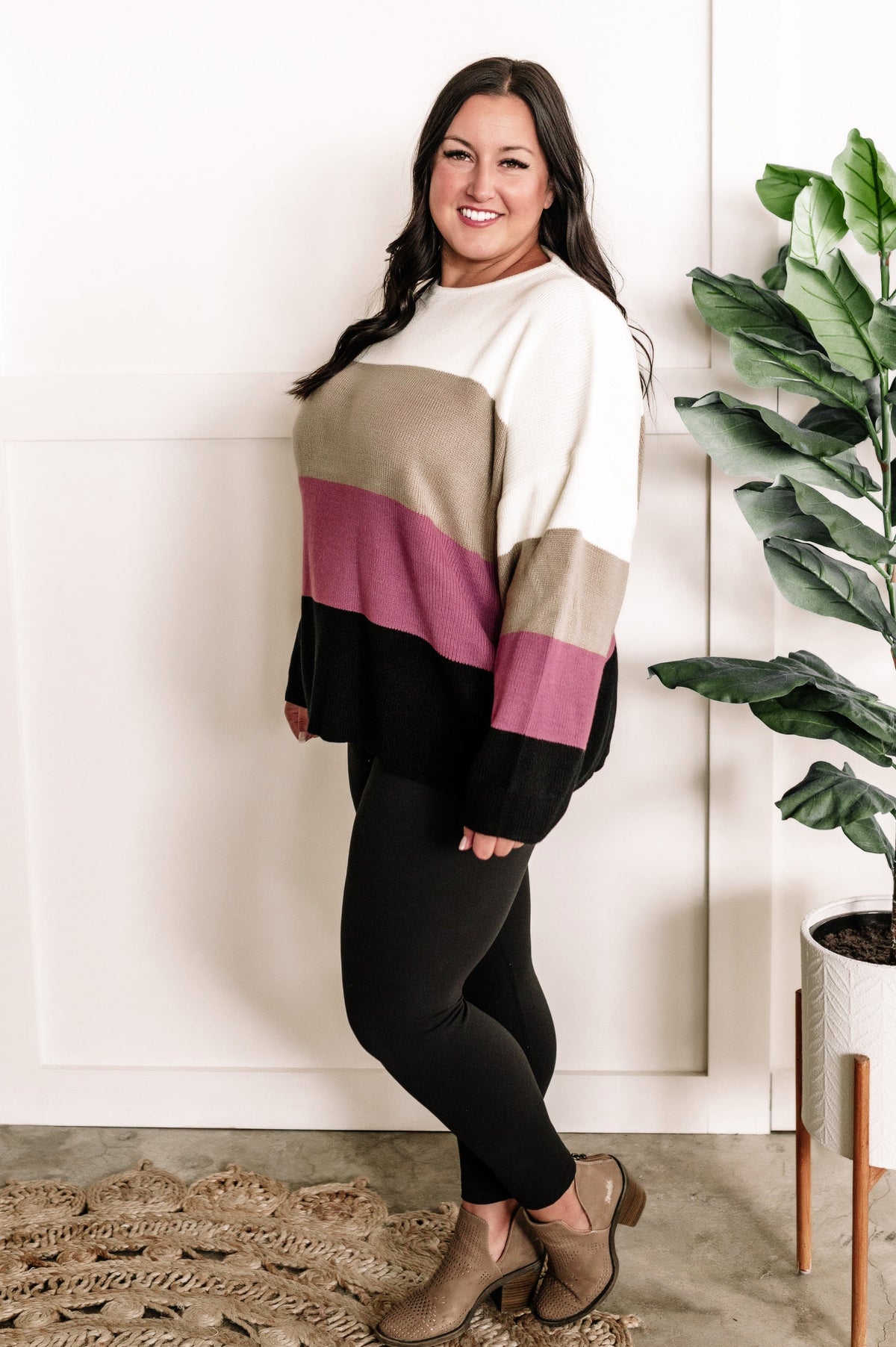 Ivory, Mocha, Berry, & Black Cozy Color Block Sweater